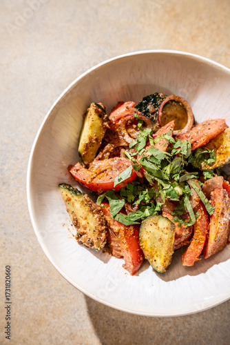 georgian, salad, cucumber, tomatoes, onion, walnut, sauce, dressing, herb, cilantro, parsley, greener, vegetable, cookery, caucasian, traditional, authentic, rustic, food, meal, dinner, lunch, eatery, homemade, epicure, organic, fresh, healthy, tasty, delicious, vegetarian, vegan, diet, natural, raw, spicey, seasoning, pepper, colourful, closeup, bowl, plate, photo, ethnic, culture, festive, background