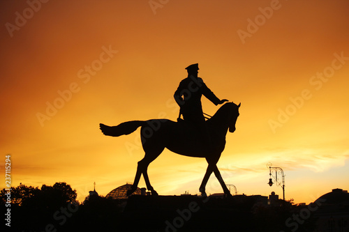 Georgy Zhukov monument in Moscow at sunset time