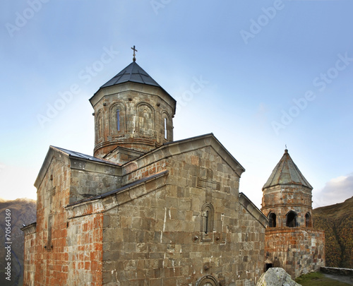 Gergeti Trinity Church near the village Stepantsminda. Georgia
