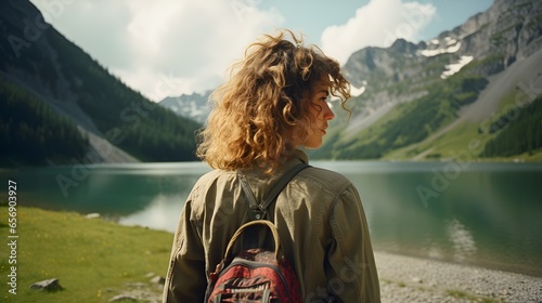German Alpine Delight: Candid Image of a Woman Amidst Alpine Scenery