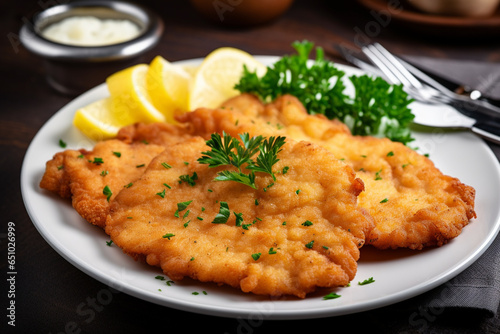 German Schnitzel On A White Plate