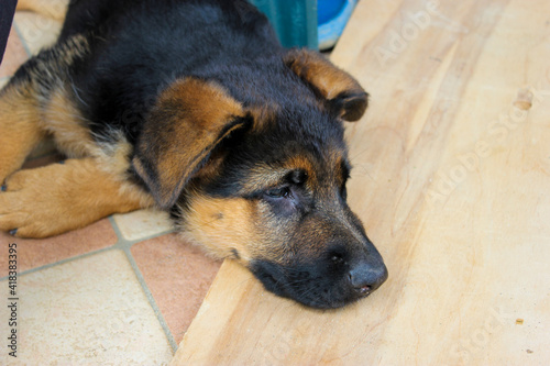 German shepherd puppy resting