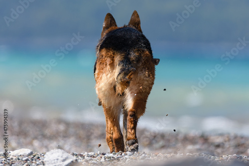 german shepherd walking to the beach