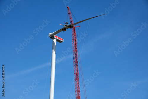 german, rhineland-palatinate, construction, large, wind, turbine, environment, ecology, sustainability, technology, industry, modern, progress, incomplete, energy, renewable, crane, machine, device, outdoors, day, sky, nature, resource, rhine, hesse, nobody, building, tall, alternative, green, preparation