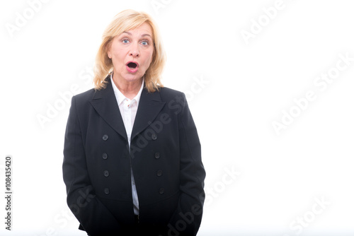 woman, senior, amazed, shock, surprised, expectation, look, expression, aged, 50s, 60s, portrait, man, person, aged, older, worry, point-blank, mouth, elation, contemplation, caucasian, attractive, release, isolated, businesswoman, business, speechless, fright, female, sing, singing