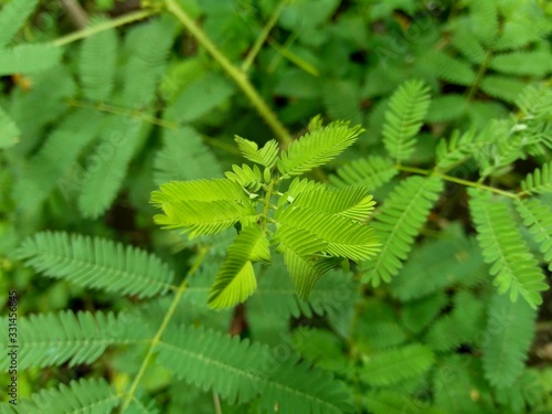 Giant Mimosa pudica, also called sensitive, sleepy, action plant, touch me not, shame plant, zombie.