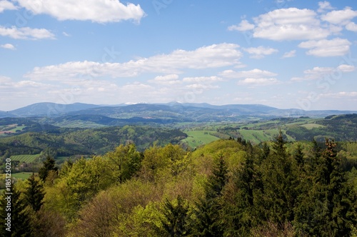 Giant mountains from lookout tower on the Markousovicky ridge,Jestrebi mountains, Eastern Bohemia, Czech republic
