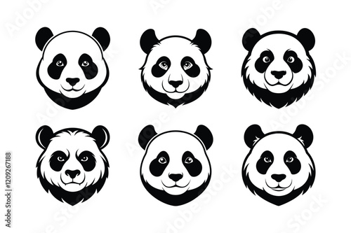 Giant Panda (Ailuropoda melanoleuca) mammal animal, labeled silhouette vector art illustration.