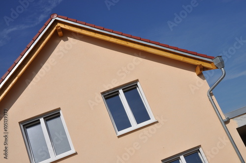 gable, house, wall, rooftop, architecture, new construction, house, heaven, ocher, pink