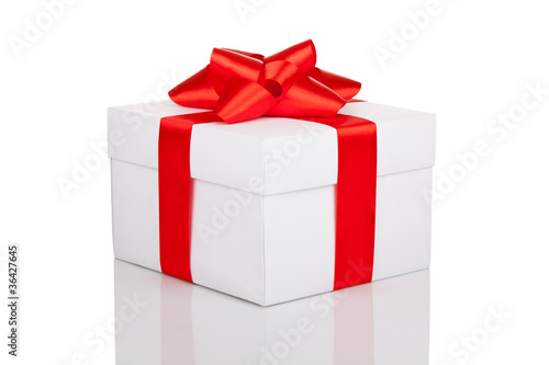 gift box with red ribbon bow isolated over white background
