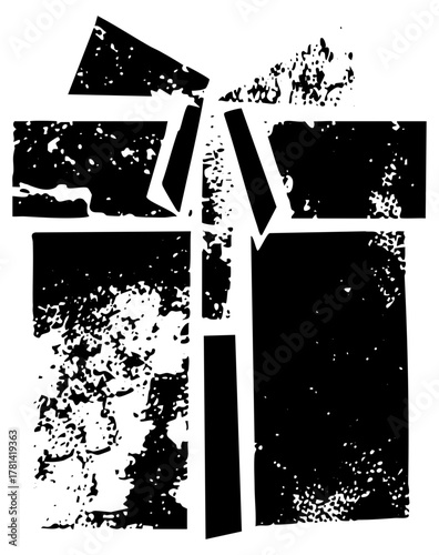 gift, present, box, ribbon, bow, package, celebration, holiday, studio, black, white, distressed, texture, vintage, graphic, illustration, vector, design, element, symbol, surprise, joy, festive, event, promotion, marketing, branding, cardboard box, retail, commerce, seasonal, greeting, card, decor, flat, minimalist, graphic design, isolated, artwork, digital artwork, gift box
