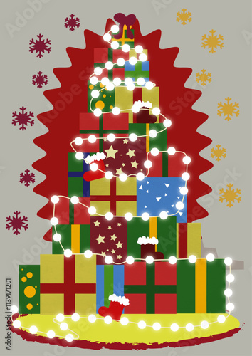 new year, christmas, christmas, present, winter, celebration, gift box, gift, box, holiday, tree, present, decoration, gift, vector, surprise, new, santa, year, bow, snowflake, greeting card, gift wrap, card, illustration