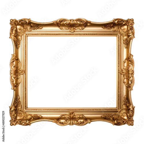 Gilded Picture Frame. Isolated on a Transparent Background. Cutout PNG.
