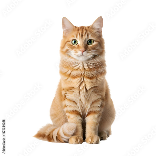Ginger Cat Posing with Transparent Background: A Fluffy Friend Sits Calmly on a Black Background, Ideal for Graphic Design Projects.