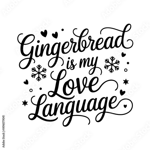 Gingerbread is My Love Language. Christmas Quotes Vector Design Isolated on White Background