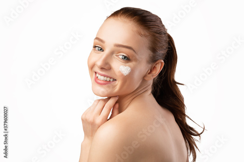 girlish, face, skincare, caucasian, beauty, red-haired, cream, facial, moisturise, wellness, portrait, moisturiser, nature, lifestyle, woman, hair, beautiful, skin, teenage, female, attractive, smile, people, cheek, lotion, camera, model, natural, teenage, white, spa, young, youth, posing, young adult, cosmetology, concept, adult, studio, lady, advertisement, pretty, banner, background, heart-shaped, like, look