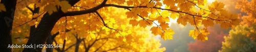 Ginkgo's vibrant yellow canopy, serene autumn scene , outdoor, vibrant, outdoor view