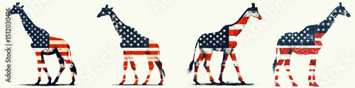Giraffe. 4th of July Independence Day American Flag Patriotism Usa America Clipart Vector Illustration. Tall african ungulate a spotted ruminant the savanna wildlife fauna.