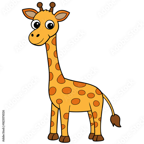 giraffe, animal, cartoon, zoo, safari, mammal, vector, illustration, wild, neck, wildlife, baby, isolated, fun, cute, tall, nature, funny, animal, art, toy, comic, character, love, drawing