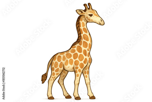 giraffe, animal, illustration, wildlife, nature, safari, mammal, spot, tall, neck, fauna, cartoon, drawing, cut-out, standing, africa, wild, graphic, design, character, comic, isolated, ecology, zoo, herbivore, savanna, ecosystem, unique, beauty, cute, lovable, graceful, peaceful, journey, discover, explorer, adventure, environment, conservation, big, plain, transparent, background, studio, shot, no, people, full, length