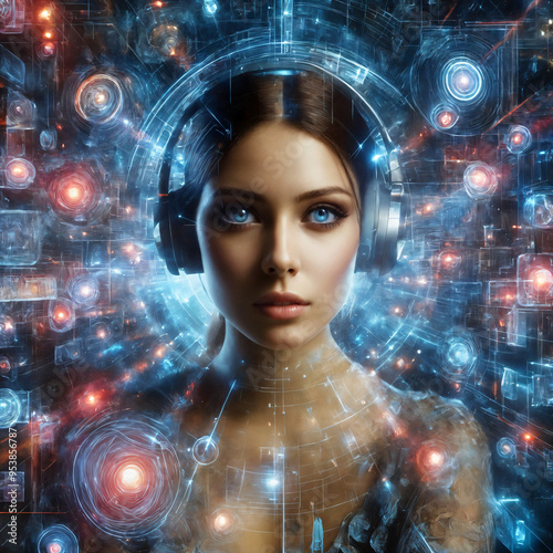 Girl in a Digital Space with Virtual Elements