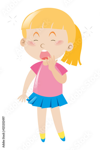 Girl in pink shirt yawning