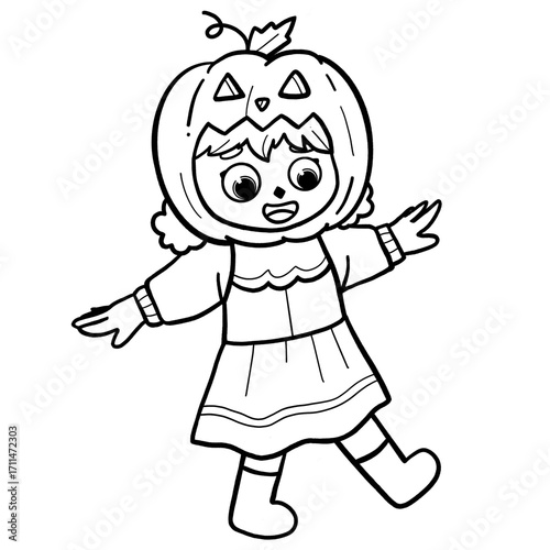 Girl in Pumpkin Halloween Costume Line Art