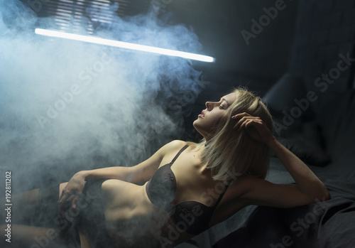 woman, beauty, fashion, young, hair, model, smoke, glamour, black, body, portrait, face, lady, dark, person, people, dress, studio, human, sensual, brunette, naked, blond, lingerie, 1