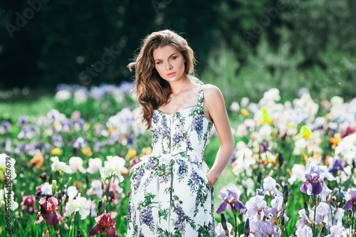 .Girl in white beautiful dress with flowers