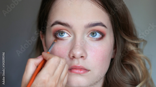 face, brush, beautiful, glamour, applying, beauty, girl, model, young, hand, fashion, skin, female, make-up, caucasian, artist, cosmetic, eyeshadow, make-up, preparation, professional, eye, attractive, application, mascara, pretty, people, brunette, woman, cute, style, black, fresh, art, reddening, salon, eyelid, home, elegance, eye, beautification, studio, close, adult, case, holding, real, tool, sensuality, constructed