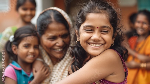 Girl, mother, and bonded hug in living room for trust, support, or security. Portrait, smiling, or joyful child in Indian adoption success, mother's day, or family reunion