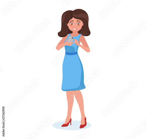 Girl or woman with her smartphone. Online chat, mobile app, Internet communication.