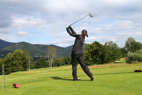 girl, golf, player, sport, nature, lawn, green, golfing, grass, play, summer, sky, shot, active, golfer, recreation, club, ball, driver, game, flying, landscaped, hat, follow, cloudy, competition, meadow, field, tree, swing, 1, lifestyle, outside, person, people, action, woman, mountain