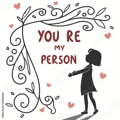 greeting card, love, affection, friendship, human relationships, person, hugs, reaching, heart, decorative, branch, floral, swirl, silhouette, simple, illustration, typography, text, message, romantic, sweet, caring, gesture, connection, celebration