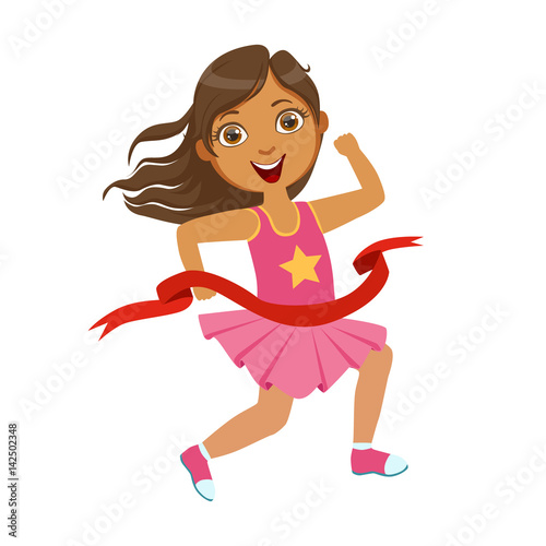 Girl run to the finish line first, a colorful character