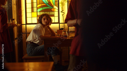 people, man, adult, sitting, woman, male, indoor, two people, female, happiness, lifestyle, smiling, table, togetherness, real people, eatery, young adult, night, enjoyment, fun, alcohol, friendship, drink, talking, cafes, cheerful, drinking, copy space, dark, relaxation, casual clothes, love, discussion, celebration, adults only, avocation, bonding, color image, young men, missy, candid, looking, dating