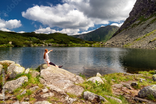 mountain, girl, lake, landscape, slovakia, woman, trekker, tarn, nature, water, day, hill, holiday maker, blue skies, looking, tatra, standing, long hair, travel, hiking, green, hiker, europa, beautiful, beauty, hike, vacation, sky, scenery, scenic, tour tourism, summer, view, mountain