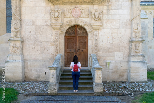 sex, admiring, architecture, cathedral, church, city landscape, day, door, entrance, girl, horizontal, one person, romania, transylvania