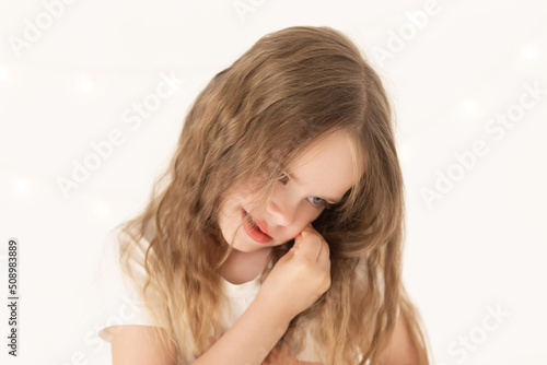 Girl, studio white, close up, fun