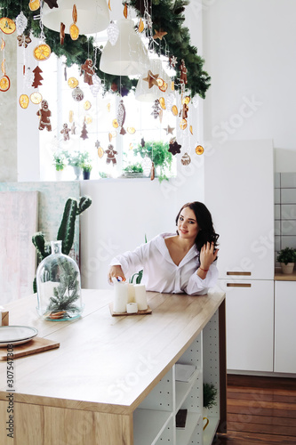girl, white shirt, morning, kitchen, getting ready for christmas, lighting candles