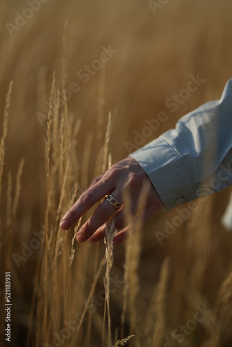 field, wheat, nature, woman, summer, agriculture, grass, people, outdoors, hand, person, country, plant, walking