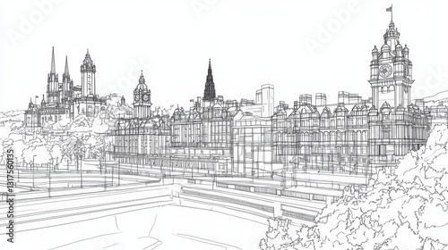 scotland, skyline, city, building, architecture, drawing, illustration, design, artwork, urban, landscape, historical, scottish, culture, travel, tour tourism, city landscape, detailed, intricate, artistic, expression, creative, leisure, activity, relaxation, fun, hobby, page, graphic, vignetting, outline, pattern, line, detail, structure, historical building, historic, landmark