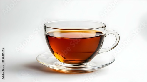 Glass cup of hot aromatic tea on white