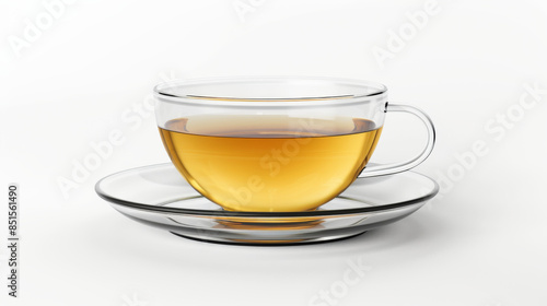 glass cup of tea with saucer isolated on white background