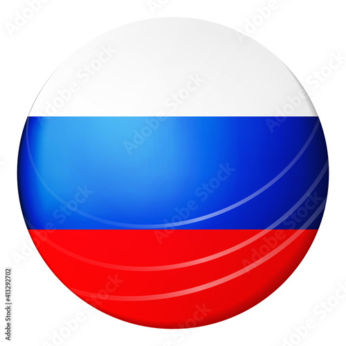Glass light ball with flag of Russia. Round sphere, template icon. Russian national symbol. Glossy realistic ball, 3D abstract vector illustration highlighted on a white background. Big bubble.