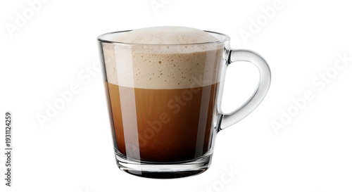 Glass mug with layered coffee and foam