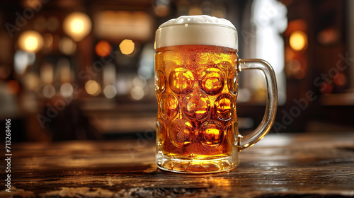 glass of beer on wooden table