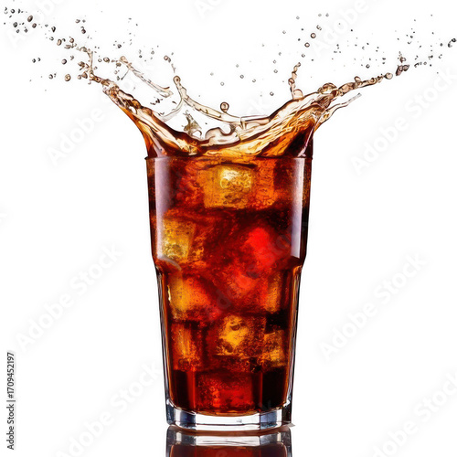 glasses, drink, ice, cola, cold, beverage, soda, isolated, alcohol, cocktail, liquid, splash, tea, white, brown, whiskey, refreshment, cool, fresh, bubble, rum, object, food, liqueur, bar