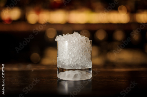 Glass of crushed ice standing on the bar counter