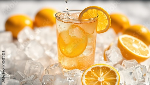 drink, glasses, lemon, ice, tea, fruit, beverage, juice, cold, cocktail, orange, isolated, citrous, fresh, water, white, food, slice, liquid, yellow, refreshment, healthy, cool, alcohol, lime